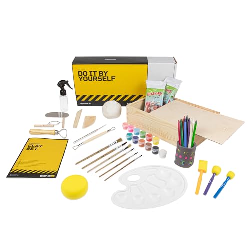 DIBYS Keramikuppsättning för barn & vuxna | Med modellverktyg, lufttorkande vit lera, färg & penslar | Pyssel-set för hemmet | Kreativt set | Originella presentidéer