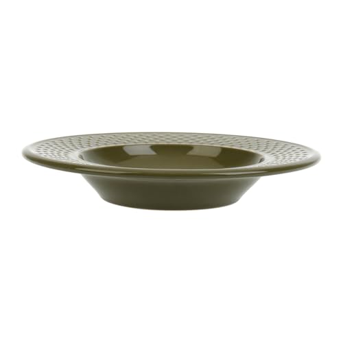 Lergods ihålig tallrik risfröområde Ø 22,5 cm färg khaki dekor riskorn