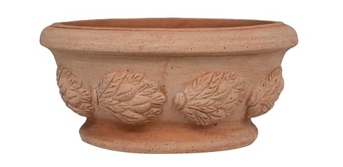 Biscottini Handgjord lerkruka tillverkad i Italien 30 x 14 x 30 cm - Rund planteringskruka - Utomhus och inomhus dekorativa vaser - Terrakotta blomskål -Modern dekorerad vas