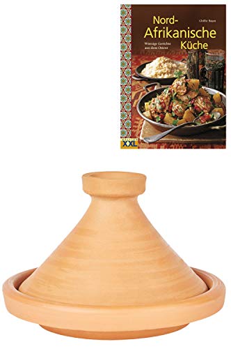 Marockansk tajine kruka för matlagning + kokbok | gryta oglaserad Aladin Ø 31 cm för 3–5 personer | inklusive recept bok nord afrikanska kök | Original lerkruka handstestad från Marocko