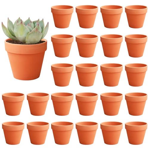 Wvu & Wvo lerkrukor små, 24 stycken miniblomkrukor, lerkrukor för pyssel, 3,5 cm liten terrakotta krukor med dräneringshål, återanvändbar lerkruka, terrakotta blomkruka växter för rum kontor