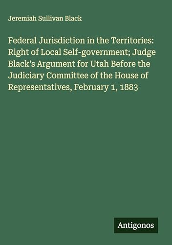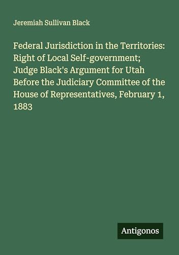 Federal Jurisdiction in the Territories: Right of Local Self-government; Judge Black's Argument for Utah Before the Judiciary Committee of the House of Representatives, February 1, 1883