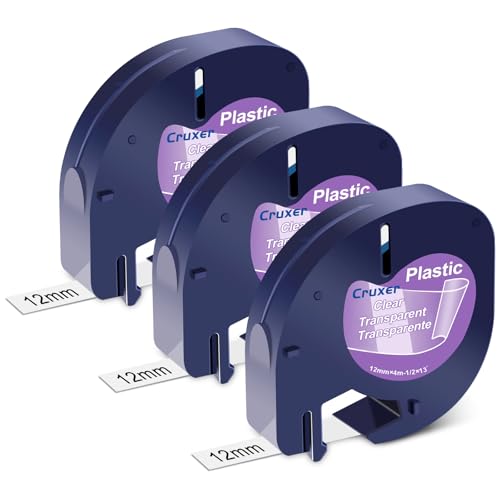 Cruxer Kompatibel med DYMO LetraTag 12267 S0721530 klar plasttejp 12 mm x 4 m, ersättningsetikettband svart på klar/transparent för Dymo LetraTag LT100H LT100T LT110T QX50 XR XM 2000, 3-pack