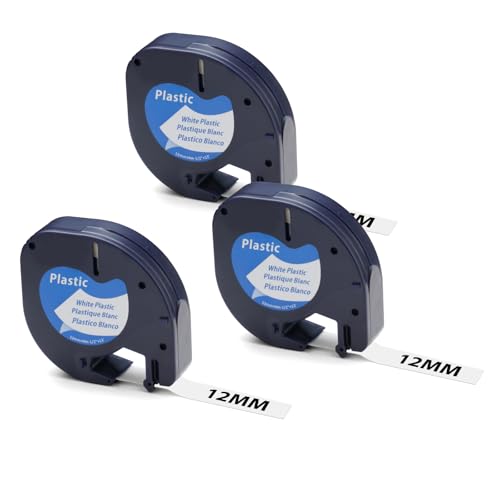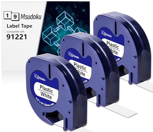 3 x Msudoku Kompatibel med Dymo 91221 12 mm x 4 m Etikettband S0721660 Kompatibel med Dymo Letratag Plastic White Tejp 91201 Svart på Vitt, för LT100H LT100T QX50 XR XM 200B 2000