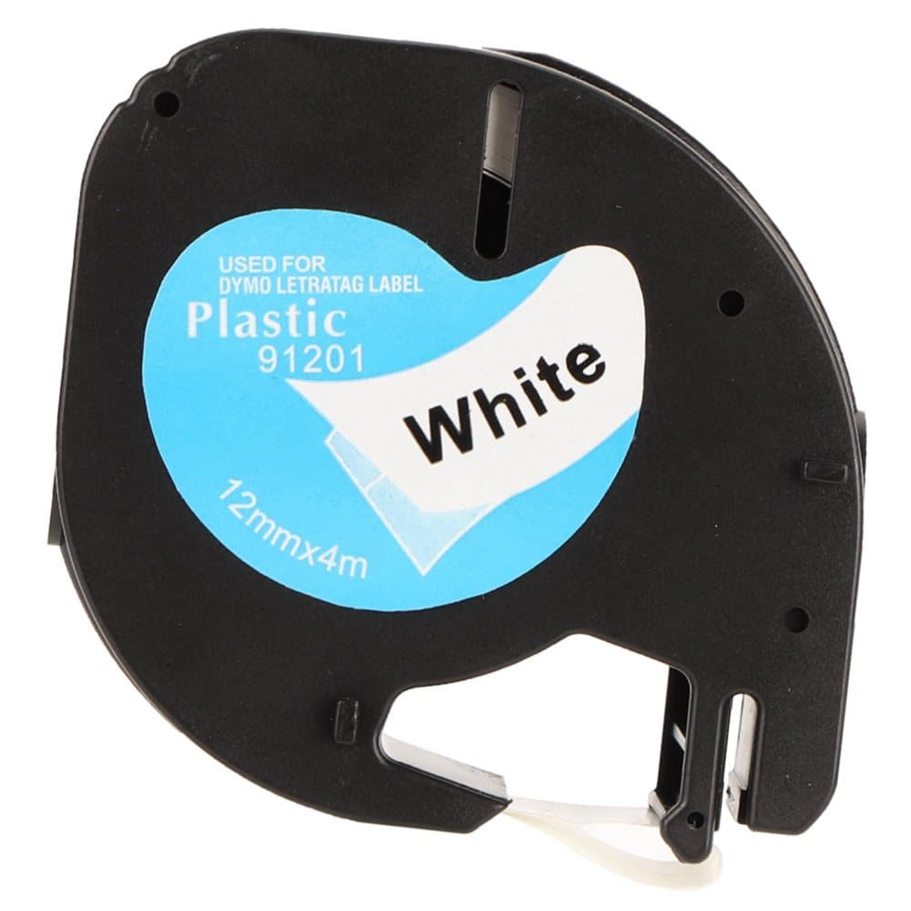 Svart på vitt etikettremsa för Dymo Letratag LT-100H/LT-100T/LT-110T/QX50 - 10 st.