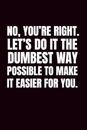 No, You're Right. Let's Do It The Dumbest Way Possible To Make It Easier For You: Funny Blank Notebook | Funny Gag Gift | 6x9 Blank Lined Notebook | ... | Secret Santa | Christmas Stocking Stuffer