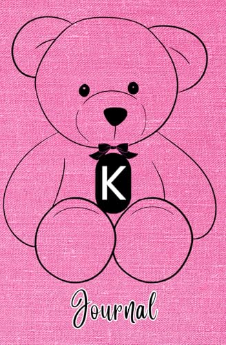 JOURNAL: Monogram Initial Letter K - Cute and Cuddly Little Teddy Bear showcasing your Initial on a Bright Pink Fabric-Look art design. Feminine & ... teens, women. Cute, Compact & Functional
