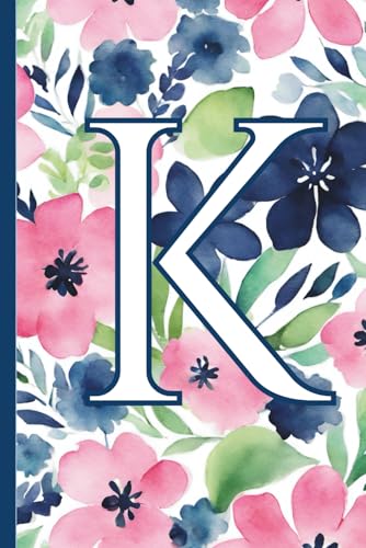 Letter K Monogram Flower Notebook: Pink & Blue Watercolor Floral | Personalized Initial “K” Writing Journal for Girls & Women | 6x9 Lined Pages