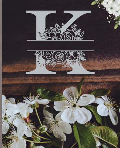 Floral Monogram Journal Elegant Lined Notebook with Letter K Cover Blue and White Journal 6 X 9 Inches Perfect Gift for Women and Girls