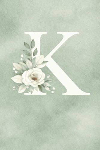Elegant Monogram Lined Journal Notebook for Women with Initial K | Floral Green & White Diary Letter K | 6x9 Inches, 175+ Pages | Ideal Gift for Women and Girls