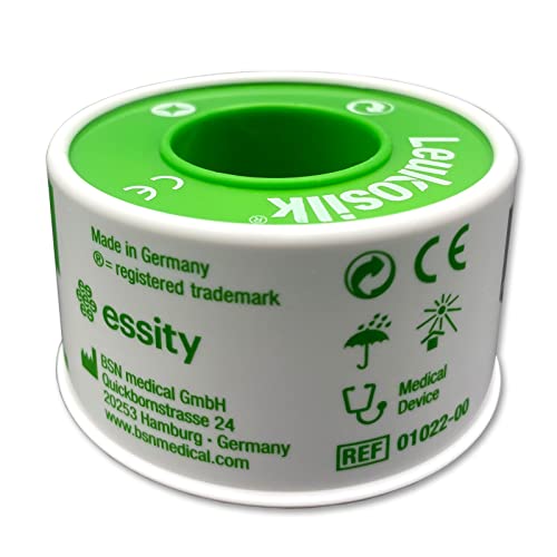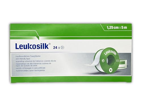 Leukosilk plåster fixeringsplåster 5 rullar 2,5 cm x 5 m – rullplåster för första hjälpen och medicinska tillämpningar – mångsidig, hudvänlig, allergivänlig