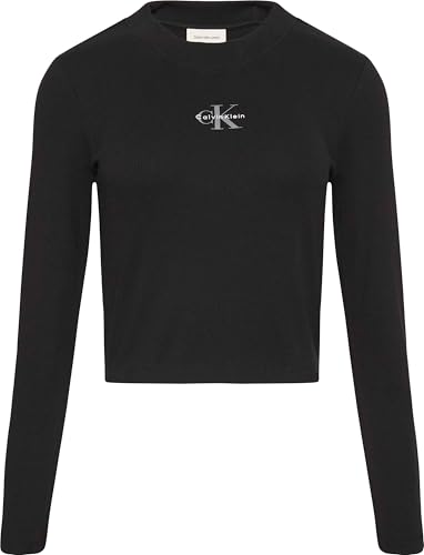 Calvin Klein kvinnors Ls Monologo Baby Tee LV047A803G T-shirts, svart (svart), S