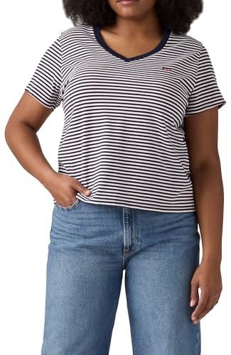 Levi's dam plus size V-ringad T-shirt, Indigo randig marinblå B, 3XL