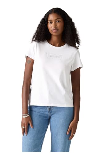 Levi's The Perfect Tee T-Shirt dam, Watercolor Logo Bright White, XXS