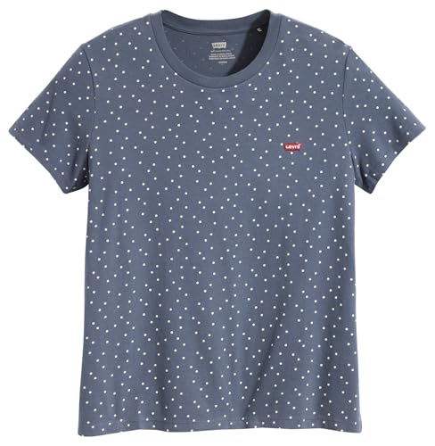Levi's The Perfect Tee T-shirt för kvinnor, randig Chesthit-logotyp, Galia Dot Vintage Indigo X, XXS
