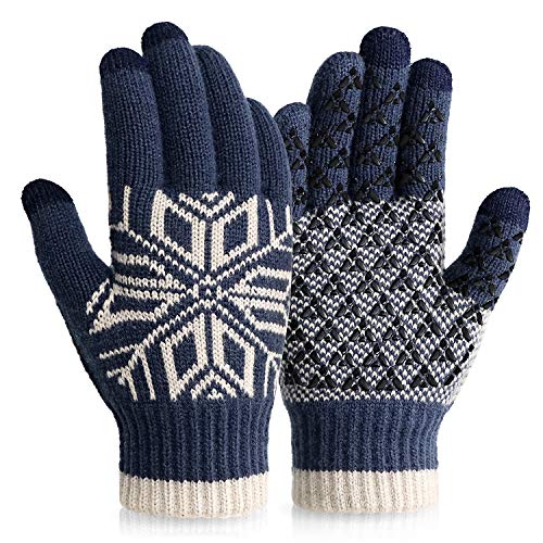 VENI MASEE vinterhandskar affärer fritid pekskärm handskar för män kvinnor mjukt ullfoder elastisk manschett halkskydd gummidesign, Y-blå, L