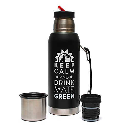 Mate Green Largoinox Vacuum Flask 1L svart ● INOX 18/8 rostfritt stål termosflaska ● Perfekt för Mate Tee ● Håller 8 timmar varm/kallt ● BPA-fri, diskmaskinssäker (LGC14281)