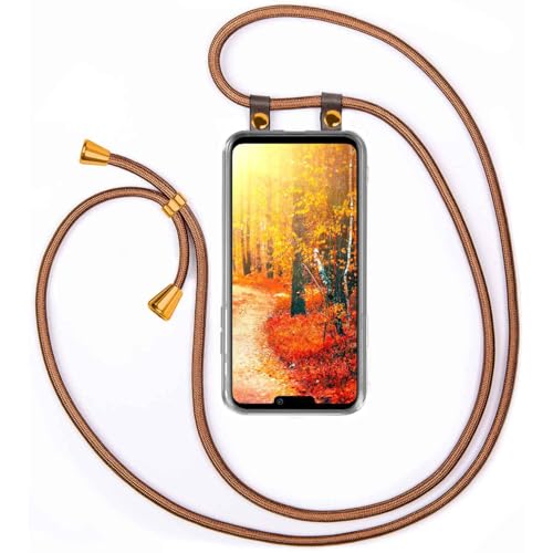 moex Mobiltelefonkedja kompatibel med LG G8 ThinQ fodral med band justerbar längd, mobiltelefonskal att hänga på, silikon fodral transparent med snöre snöre avtagbar i guld