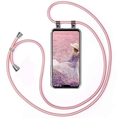 moex Mobiltelefonkedja kompatibel med LG G8 ThinQ fodral med band justerbar längd, mobiltelefonskal att hänga på, silikon fodral transparent med snöre snöre avtagbart i roséguld