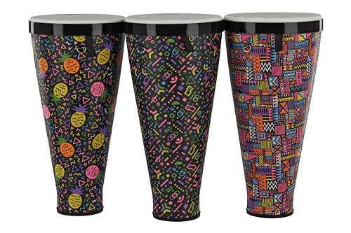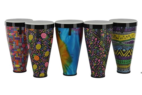 GEWA Liberty Timbau stapelbara trummor – storlek (diameter): 9 tum (22,8 cm), höjd: 45 cm (18 tum) – set med 5: färger – Crazy Neon, ananas, abstrakt, batik, sarong