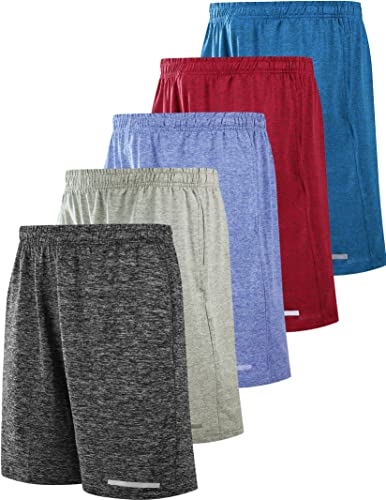 Liberty Import-paket med 5 atletiska basketshorts för män nät snabbtorkande träningskläder med fickor, Ljung kol/ljusgrå/röd/blues, S