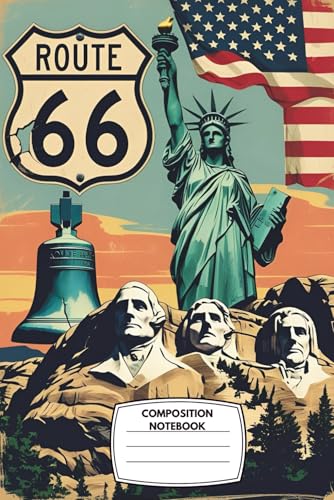 Composition Notebook: Wide ruled, 6x9", 120 pages - American Icons Vintage Collage Journal Featuring Route 66, Liberty Bell & Statue of Liberty - ... Buffs, Students, and Patriotic Writers
