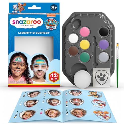 Snazaroo Paw Patrol Marshall & Liberty Makeup Kit - Vattenfärger för barn och vuxna, 8 färger, 1 stencil, 1 x pensel, 1 svamp, 1 guide, vattenbas, sminkmålning