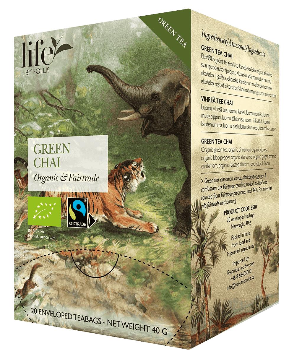 Te - Life by follis | Premium te | Grönt te Chai | Ekologiskt & Fairtrade | 6 askar x 20 tepåsar | totalt 120 påsar.