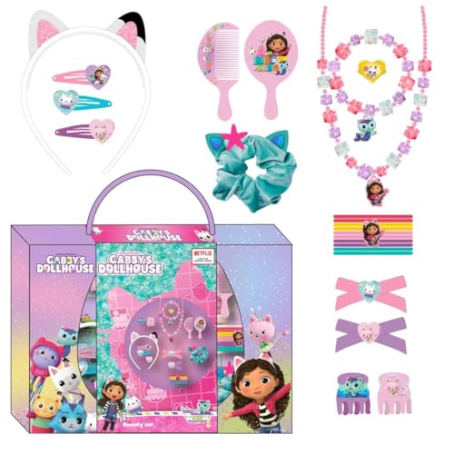 Gabby's Dollhouse skönhetsset - inkluderar 1 tyghårband, 10 hårband, 2 pincett, 3 hårnålar, 2 borstar, 1 pannband, 1 halsband, 1 armband och 1 ring - originalprodukt designad i Spanien