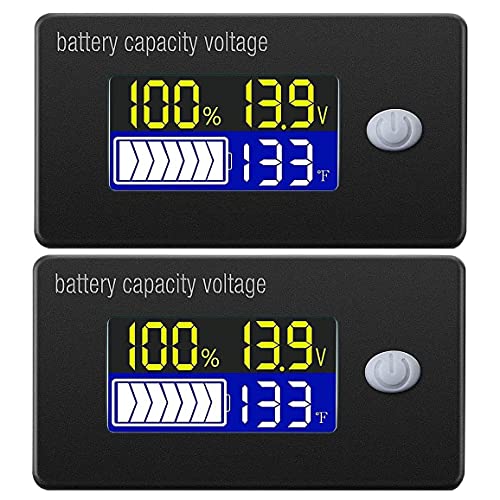 DollaTek 2 st batterikapacitetsindikator, 12 V, display, LCD, voltmätare, temperaturmätare, testare för Li-ion, Lifepo4, blysyra