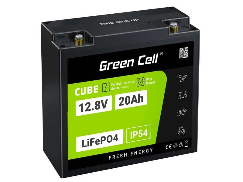 Green Cell Lfpgc12v20ah, Litiumjärnfosfat (Lifepo4), 12,8 V, Svart, Grön, 20 Ah, 256 Wh, 10 År