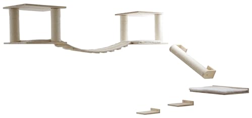 Kerbl Pet Liggbräda Timber, För Katter, Väggmonterad, Kattmöbel, Med Klösmatta, Tvättbara Kuddar, Sisalpelare, Trä, Brun, 58X89 Cm