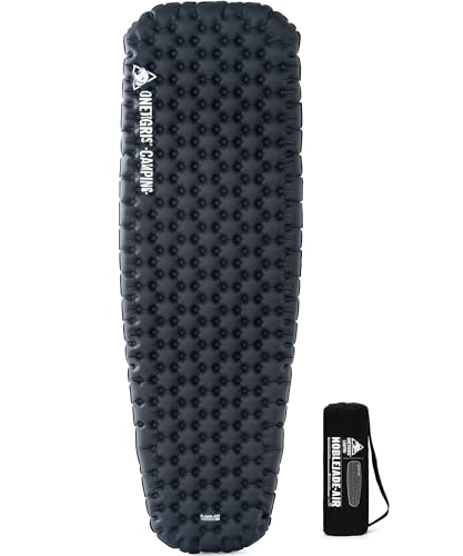 OneTigris NOBLEJADE Liggunderlag utomhus vikbar med pumpsäck, 10 cm förtjockad ultralätt luftmadrass 1 person camping madrass uppblåsbar för vandring bil (R-värde 7,3)