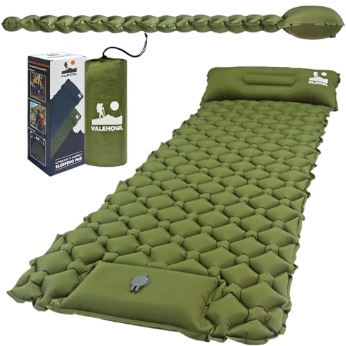 VALEHOWL 10CM Tjock Uppblåsbart Liggunderlag för Camping, med Fotpump och Kudde, Lätt Luftmadrass för Utomhus, Backpacking, Vandring