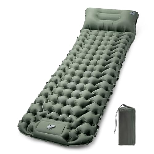 MULEVIP Liggunderlag camping liggunderlag utomhus självuppblåsbar luftmadrass med kudde, med fotpress pump förtjockad vattentät vikbar ultralätt sovmatta för vandring resor backpacking strand