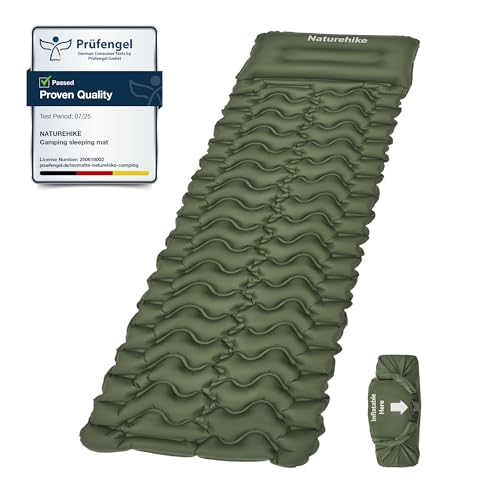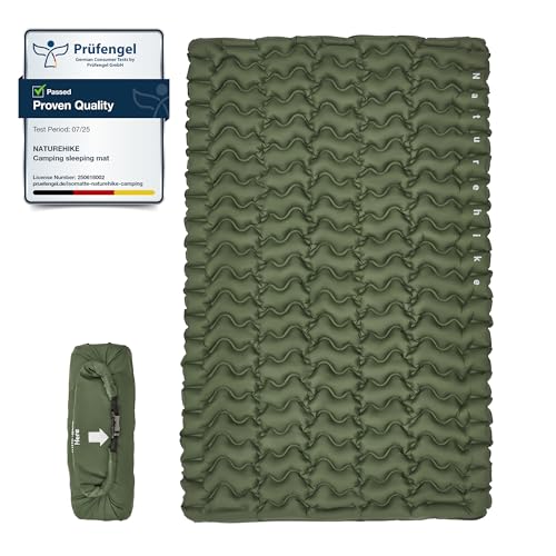 Naturehike Ultralätt uppblåsbar matta – liggunderlag lätt enskilda sovmattor, luftkudde, utomhus, kompakt och fuktbeständig för backpacking, camping, ingångsnivå (armégrön – dubbel)