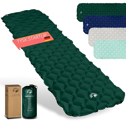Backpacker's Journey matta campingmadrass. Liggunderlag utomhus luftmadrass, liggunderlag ultralätt med liten förpackningsstorlek. Perfekt för vandring, camping och utomhus (mörkgrön)