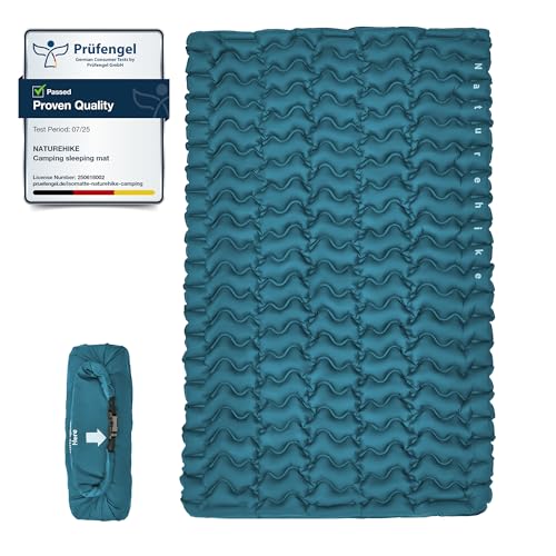 Naturehike Ultralätt uppblåsbar matta – liggunderlag lätt enskilda sovmattor, luftkudde, utomhus, kompakt och fuktsäker för backpacking, camping, ingångsnivå (mörkblå – dubbel)