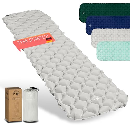 Backpacker's Journey Liggunderlag – ultralätt luftmadrass med liten förpackningsstorlek, perfekt för cykling, camping och utomhus – uppblåsbar luftmatta, lätt och kompakt (grå)