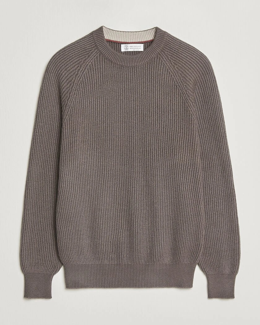 Brunello Cucinelli Heavy Cotton Rib Sweater Light Brown