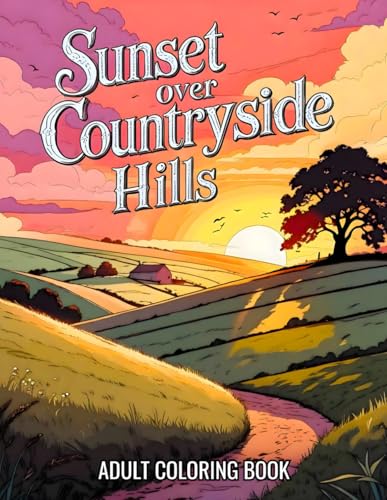 Sunset Over Countryside Hills Adult Coloring Book: 38 Beautiful Pages with Rolling Valleys, Quiet Villages and Distant Horizons – Perfect for Creative ... Landscapes, Open Meadows and Evening Light