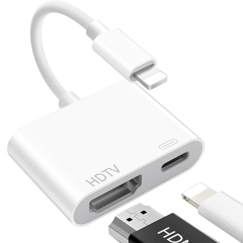 Omivine Lightning till HDMI-adapter, 1080P Lightning HDMI-kabelkontakt, digital AV-omvandlare synkroniseringsskärm video och ljud med laddningsadapter