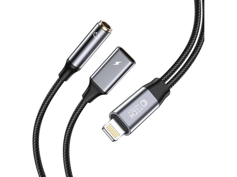 Adapter Av Tech-Protect Kabel Tech-Protect Ultraboost Lightning (Męski) / Mini Jack 3.5Mm (Żeński) - Lightning (Żeński) - Czarny