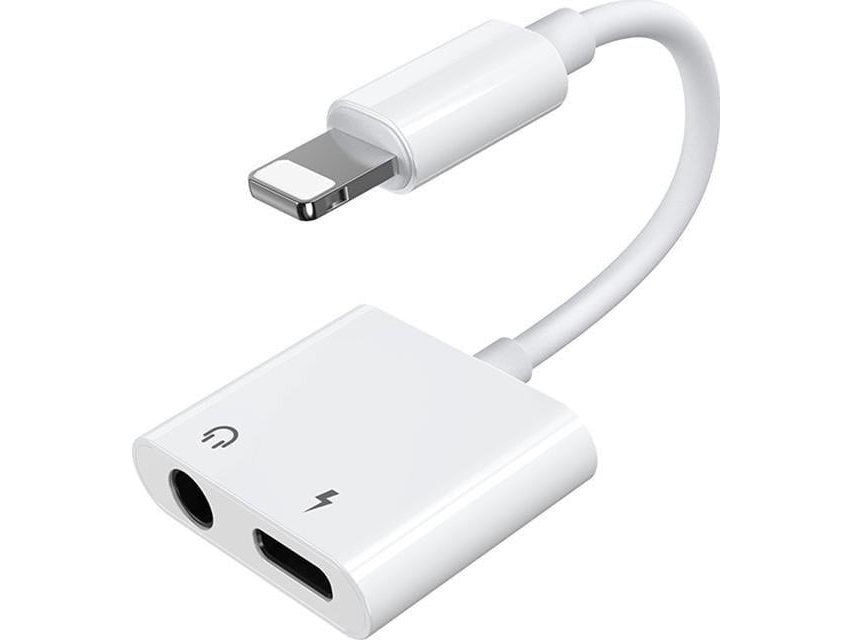 DCU Tecnologic | Lightning-adapter - Aux/Audio Jack | Anslutning för mobil/surfplatta/PC | hörlursadapter | Lightning-anslutning - Audio/AUX-uttag | Vit