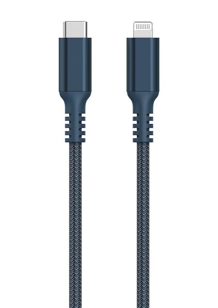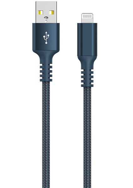 Kabel USB Lightning kontakt för iPhone & iPad Blå/Nylon. 3m