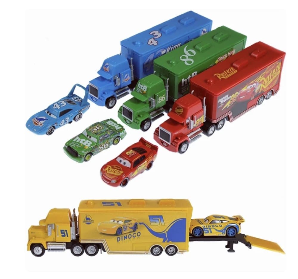 7 Pcs Disney Cars 3 Lightning McQueen Racer Car & Mack Truck Kids Toy Collection