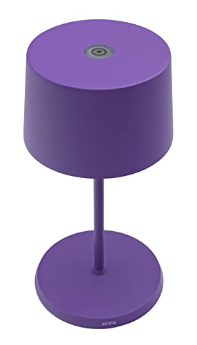 Zafferano, Olivia Minilampa, Bärbar och Uppladdningsbar Bordslampa med Touch Control, Lämplig för Vardagsrum och Utomhus, Dimmer, 2700-3000 K, Höjd 22 CM, Färg Lila