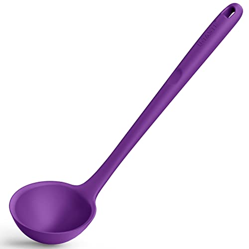 34cm silikonsoppslev: U-Taste 315℃ Värmebeständig non-stick sömlös gummi Stort kök Djup serveringssked med halkfritt fast långt handtag för matlagning av sås, grytor, såser, chili (Lila)