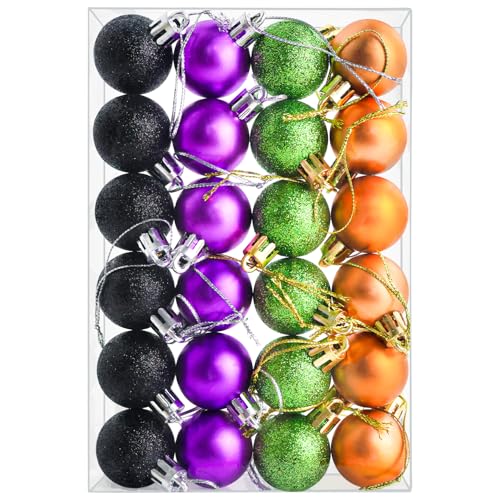24 Stycken 30 mm Halloween Trädgranskulor Mini Julgranskulor Hängande Boll Prydnader för Festdekoration, Svart Lila Grön Koppar
