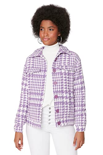 Trendyol dam vanlig basic pläd tyg vinterjacka kappa, lila, 34, lila, 34
